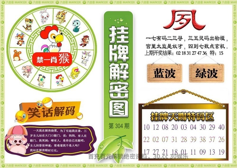 | 302期六肖 | 鸡龙猪马兔猴 | 开:猴22 |